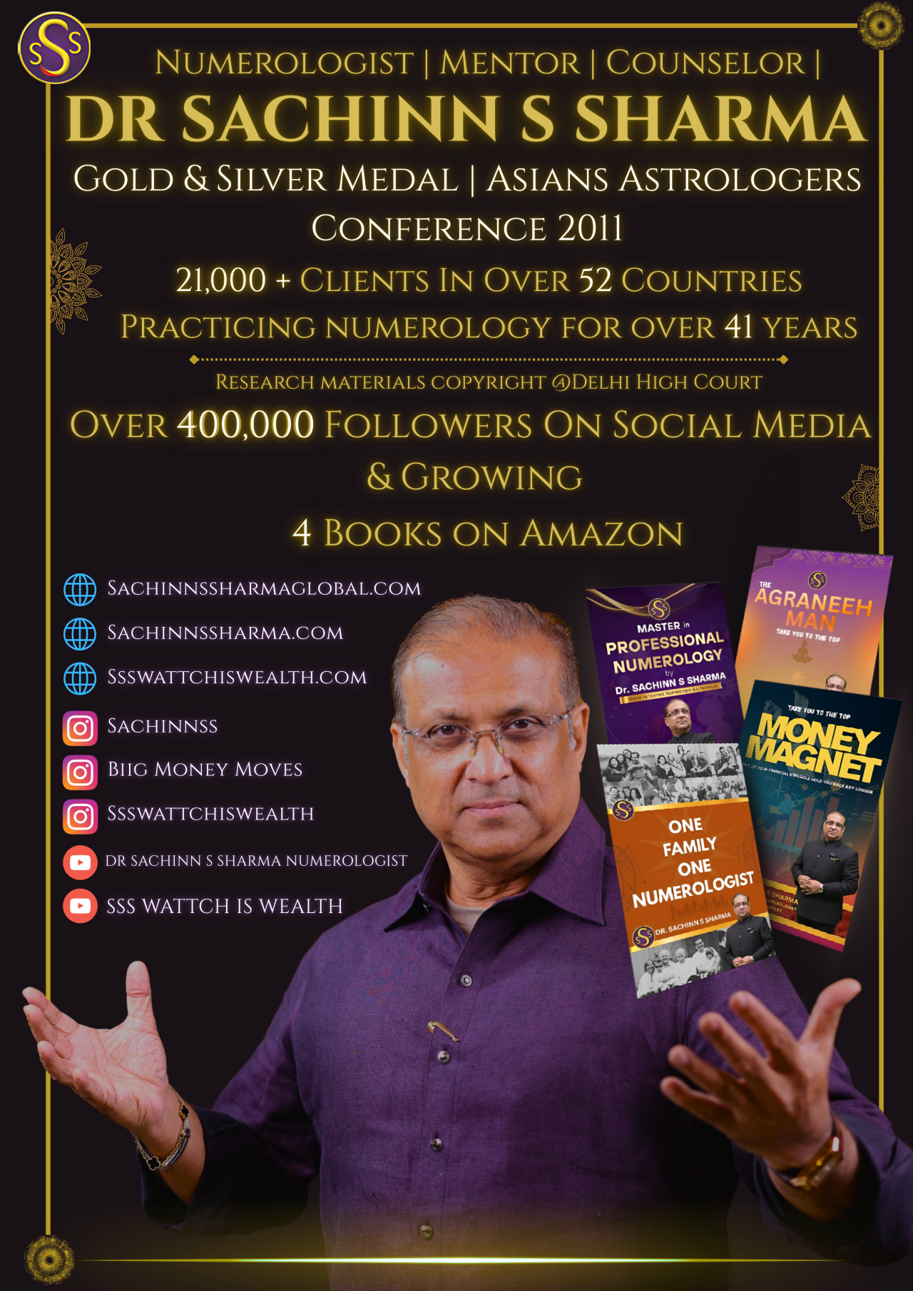 Today, luminaries from varied professional spaces, corporate chiefs, family-owned businesses, small and medium enterprises, women emerging from adverse situations et al regard Sachinnji as the force that led them through transformation, guided through their numbers to better understand and follow the path of their destined blueprint, the purpose of their life, the past life’s karmic debts and how to clear them, the psychological makeup and achieving breakthroughs in the blockages, designing one’s individual name blueprint to be a catalyst.